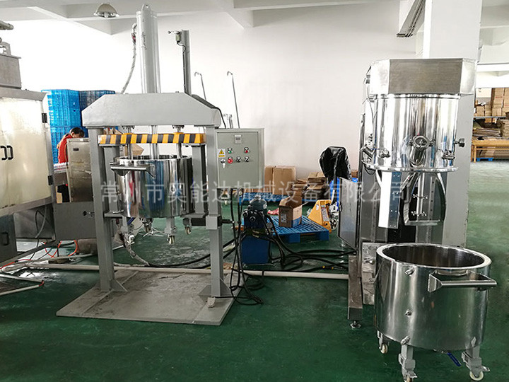 真空行星攪拌機的特點為:主機采用行星齒輪減速機設計,低噪音,機械效率高,可節省動力使用及減少設備占用空間。該機器適用于化工、輕工、食品、電池、制藥、建材、農藥等行業所需的多組份固-固相、固-液相、液-液相物料的混合、反應、分散、溶解、調質等工藝,如油墨、顏料、粘膠劑、密封膠、封裝膠軟膏、糊狀物料、潤滑脂、油漆、膏狀化妝品、添加物等多種高粘稠物的制備。使用粘度范圍10,000~1,000,000CP左右。攪拌器的形式根據物料要求可為多層漿葉式、框式、蝴蝶式、外輪式等。和普通攪拌機相比,它有如下優缺點: